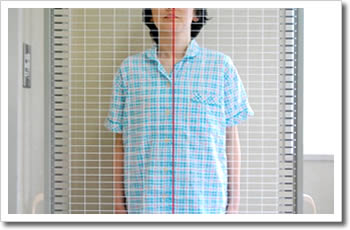 首の傾きや足の左右差、骨盤のねじれ等を調べることによって、身体の歪みを確かめます。ここでは、身体に触れて検査いたします。